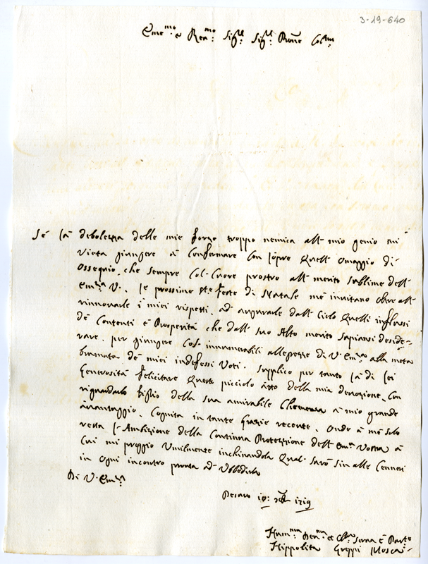 Lettera di Ippolita Greppi Mosca ad Annibale Albani (1719 dicembre 10)