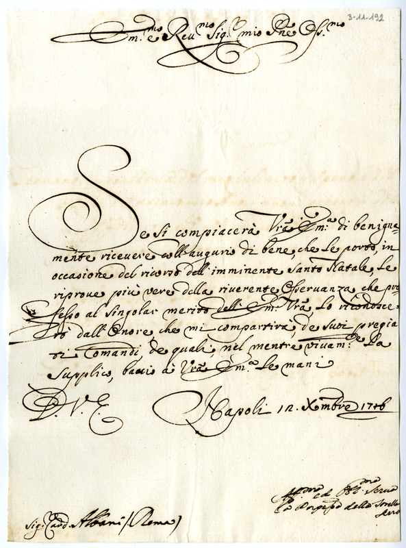 Lettera al cardinale Annibale Albani (1716 dicembre 12)