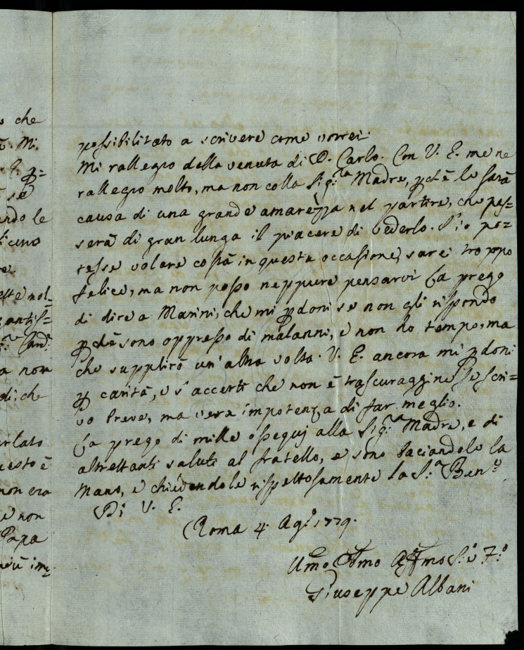 Lettere diverse ricevute dal principe Orazio Albani nella permanenza in Urbino del 1779