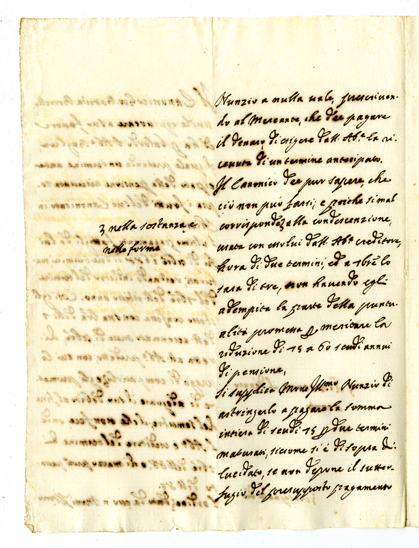 Relazione circa i pagamenti dovuti all'abate Baglioni
