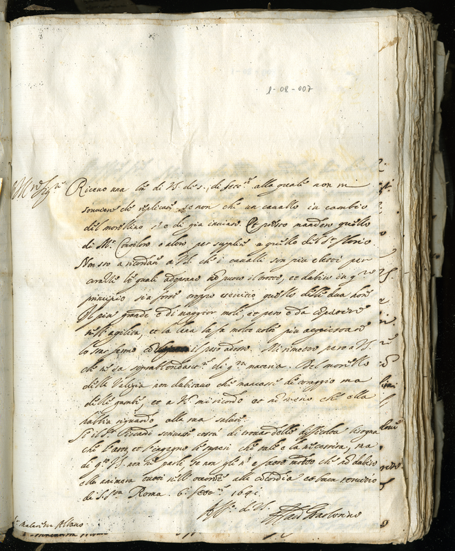 Lettera del Cardinale Barberini Francesco senior a Malatesta Albani (1641 settembre 6)