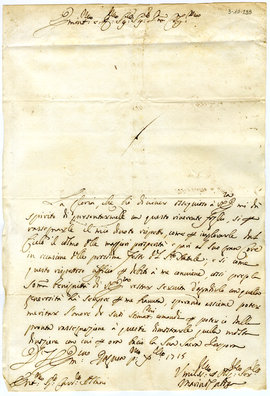 Lettera di Marino Caboga al cardinale Annibale Albani (1715 dicembre 1)