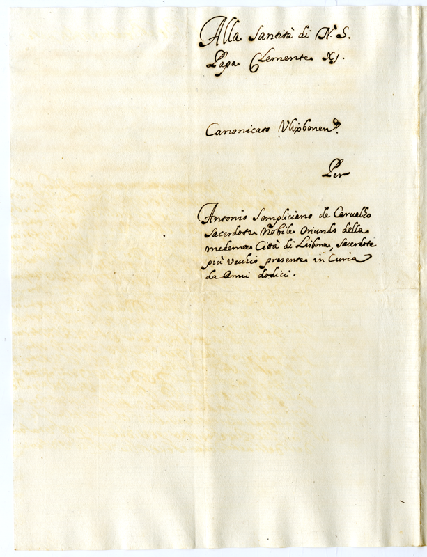 Lettera di Antonio Sempliciano de Carvalho a papa Clemente XI (1704)
