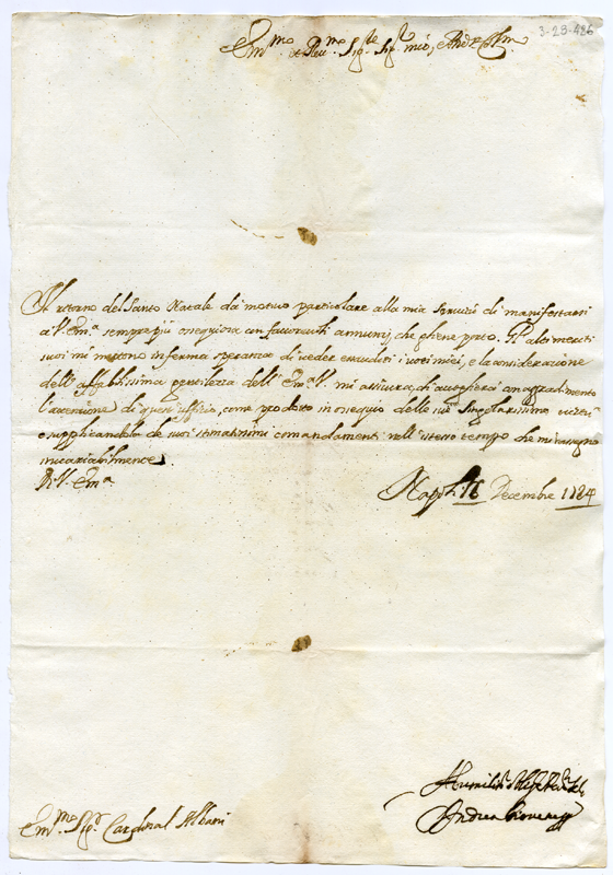 Lettera di Andrea Giovene al cardinale Annibale Albani (1724 dicembre 16)