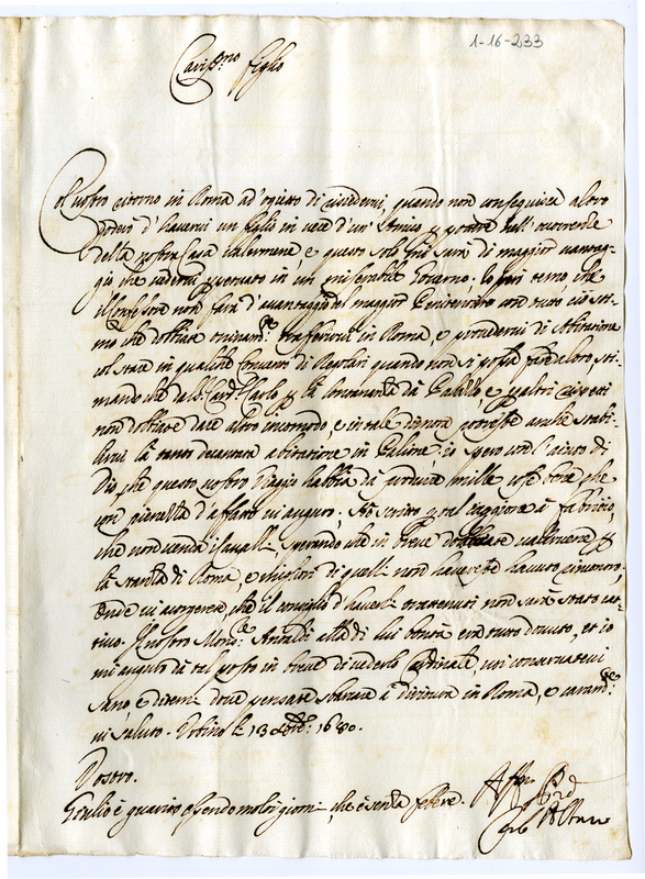 Lettera di Carlo Albani a Giovanni Francesco Albani (1680 dicembre 13)
