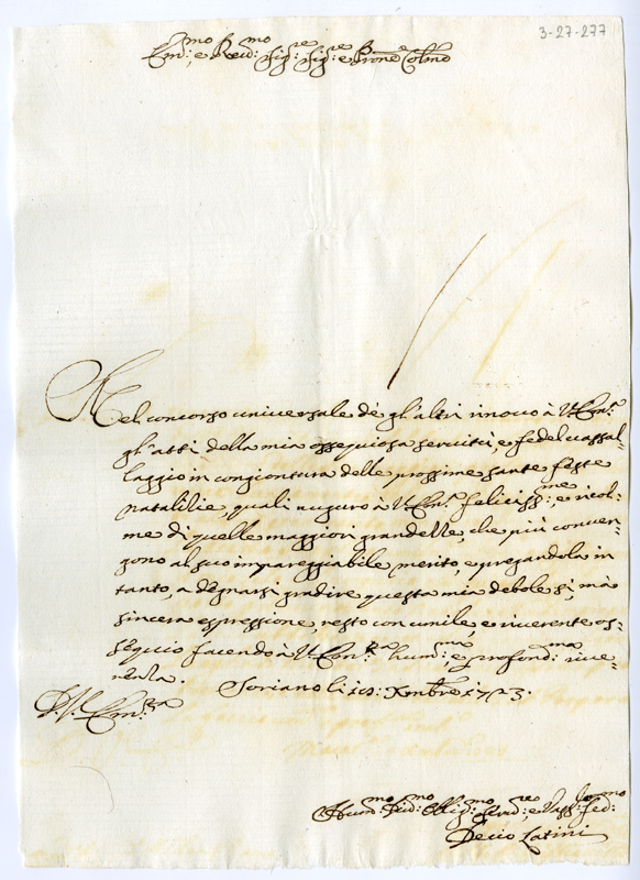 Lettera di Decio Latini al cardinale Annibale Albani (1723 dicembre 18)