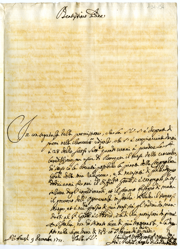 Lettera di frate Michele Angelo a Clemente XI (1711 dicembre 9)