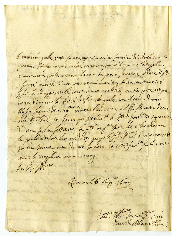 Lettera di Giulia Albani Olivieri degli Abbati a Giovanni Francesco Albani (1677 giugno 6)
