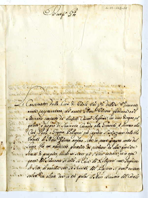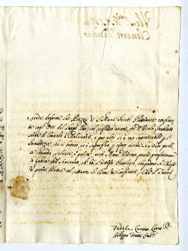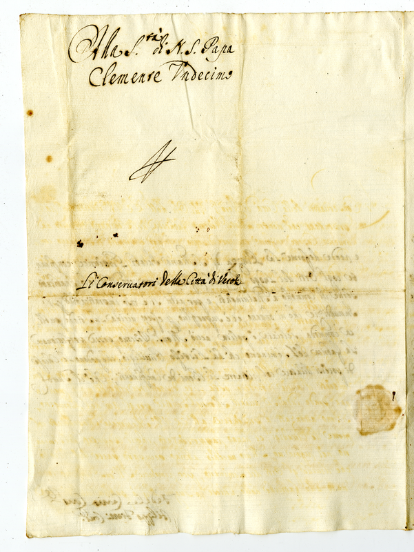 Lettera dei conservatori della città di Veroli, a firma di Filippo Frezzi, a Clemente XI (1714)