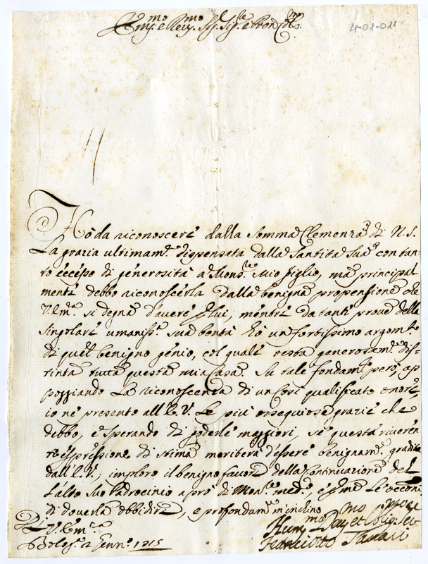 Lettera di Franciotto Tanari al Cardinale Annibale Albani (1715 gennaio 2)