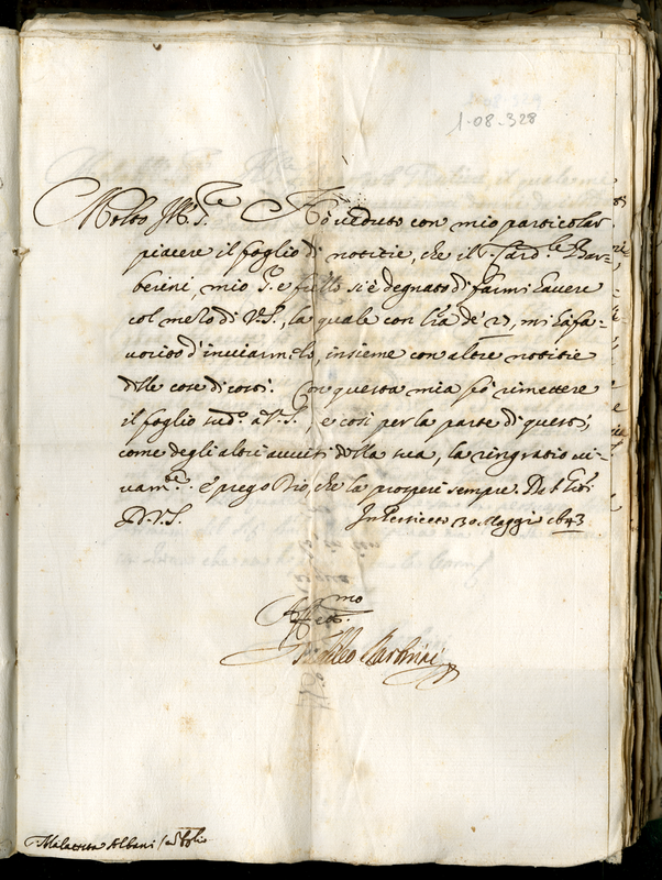 Lettera di Barberini Taddeo a Malatesta Albani (1643 maggio 30)