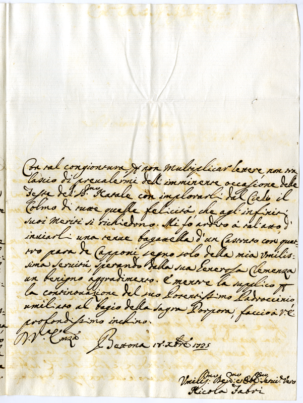 Lettera di Nicola Fabri al cardinale Annibale Albani (1725 dicembre 18)
