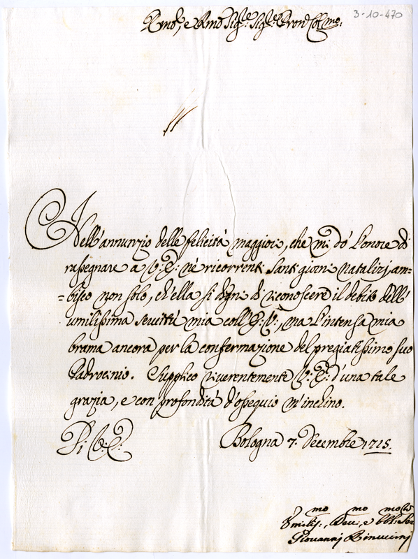Lettera di Giovanni Rinuccini al cardinale Annibale Albani (1715 dicembre 7)