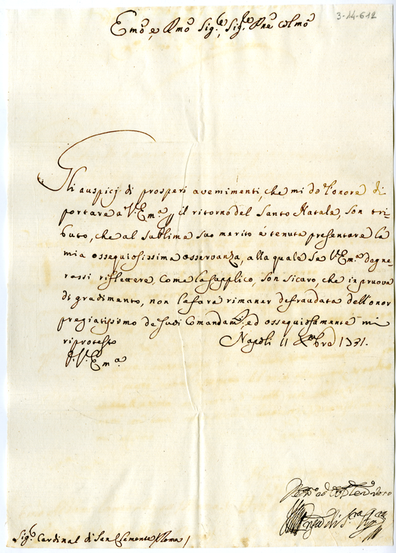Lettera al cardinale Annibale Albani (1731 dicembre 11)