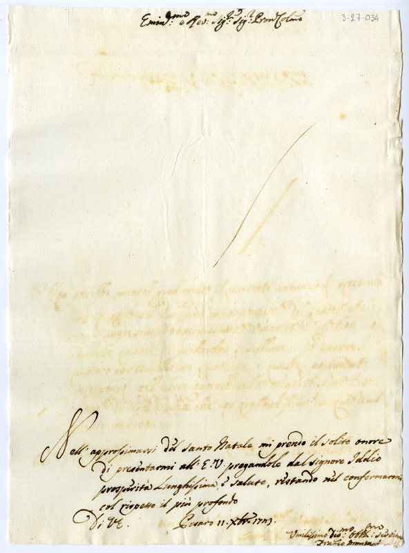 Lettera di Francesco Montani al cardinale Annibale Albani (1723 dicembre 11)