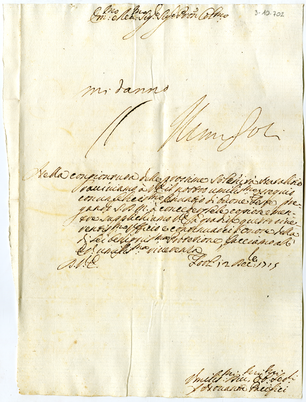 Lettera dei novanta pacifici di Forlì al cardinale Annibale Albani (1715 dicembre 12)
