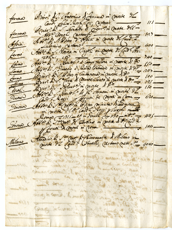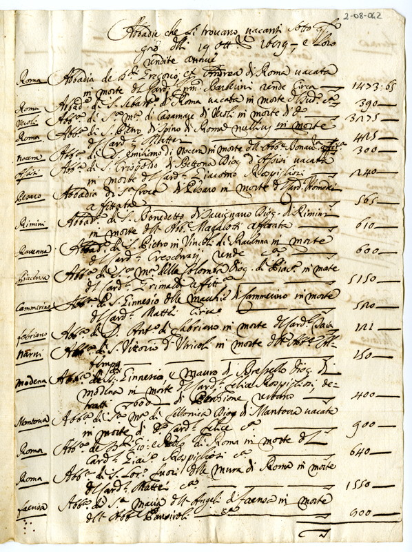 Abbadie che si trovano vacanti sotto questo segno delli 19 ottobre 1689-, e loro rendite annue