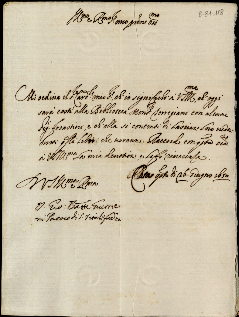 Memoriali diversi diretti al signor cardinale S. Onofrio