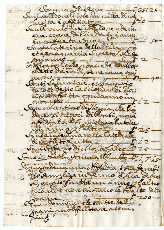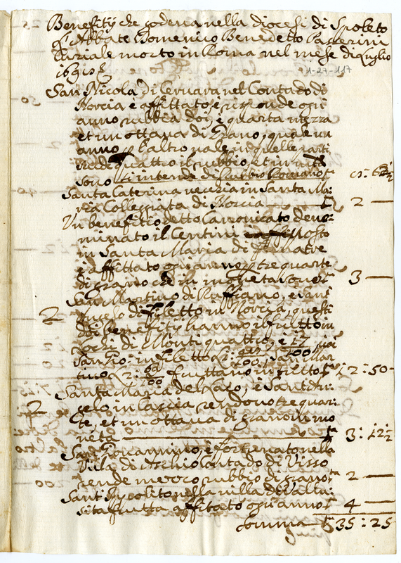 Benefici che godeva nella Diocesi di Spoleto l'Abate Domenico Benedetto Passarini curiale morto in Roma nel mese di luglio 1698