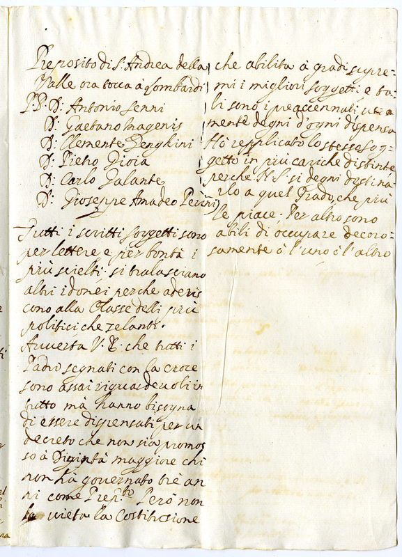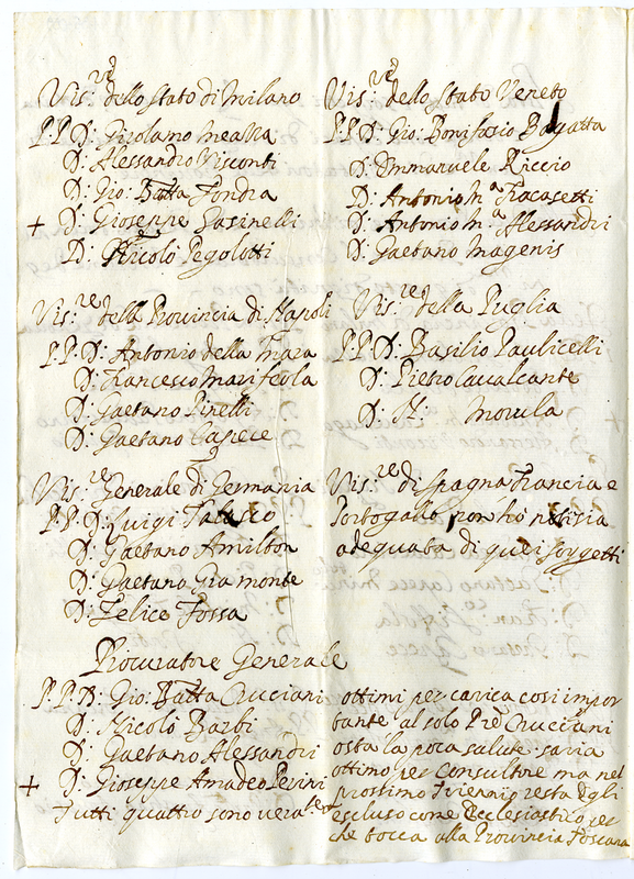 Lista di tutti i soggetti i quali per talento, dottrina e bontà sono capaci di occupare le cariche di Consultori e di Visitatori nelle varie Provincie (1700-1721)