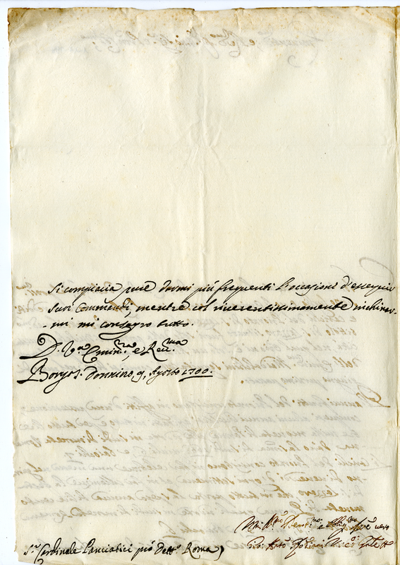 Lettera di Giovanni Antonio Rodiani al Cardinale Panciatici (1700 agosto 9)