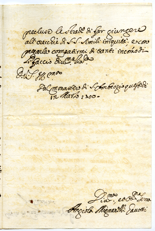 Copia. Lettera di Angiola Mignanolli Gavotti a monsignor Gozzadini (1700 marzo 12)