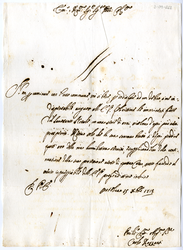 Lettera di Carlo Razzanti al cardinale Annibale Albani (1713 dicembre 15)