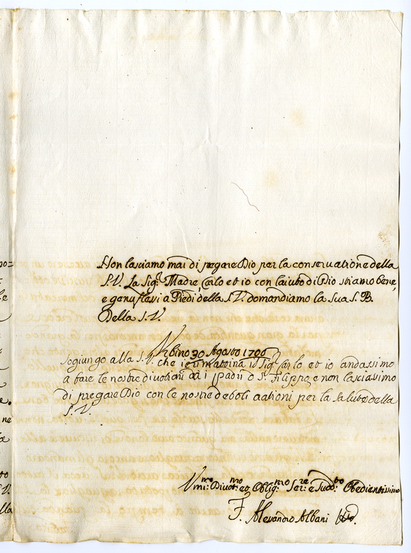 Lettera di Alessandro Albani a papa Clemente XI (1706 agosto 30)