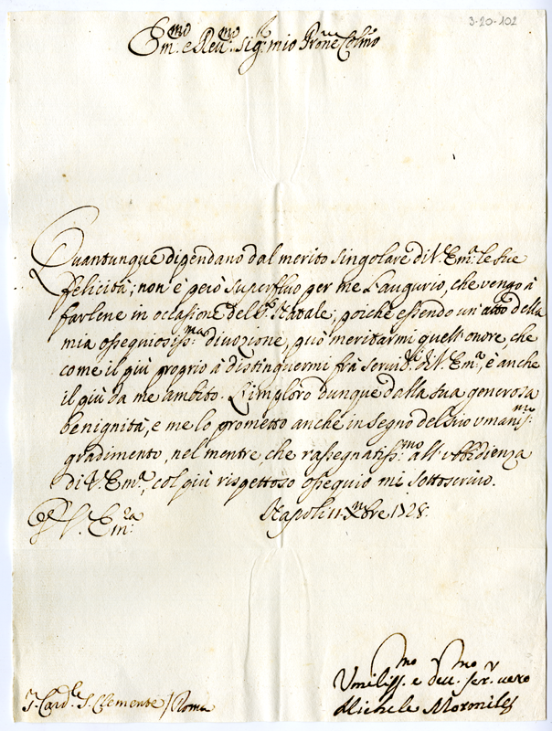 Lettera di Michele Mormile al cardinale Annibale Albani (1728 dicembre 11)
