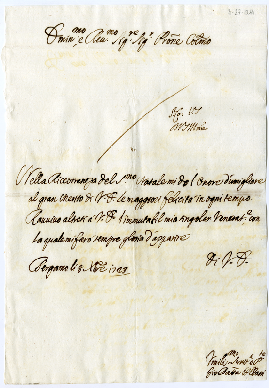 Lettera di Giovanni Battista Albani al cardinale Annibale Albani (1723 dicembre 8)