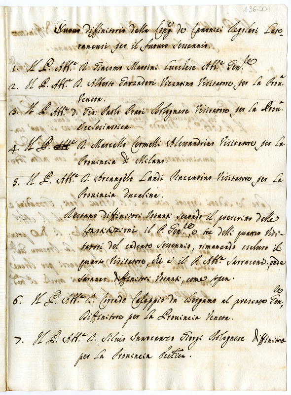 4. Nuovo Definitorio della Congregazione dei Canonici Regolari Lateranensi per il futuro sessennio (1691-1721)