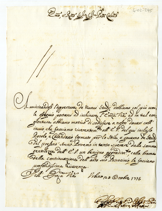 Lettera al cardinale Annibale Albani (1715 ottobre 25)