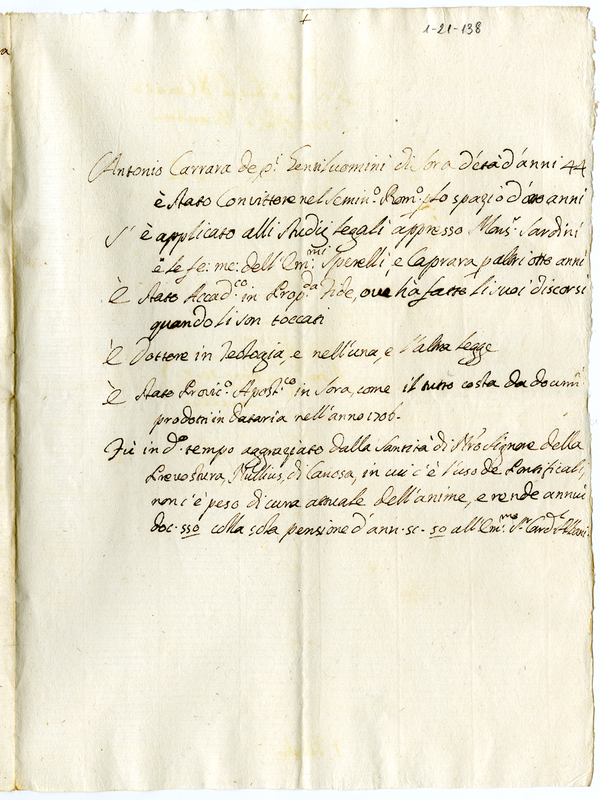 Titoli e requisiti di Antonio Carrara (1700-1721)