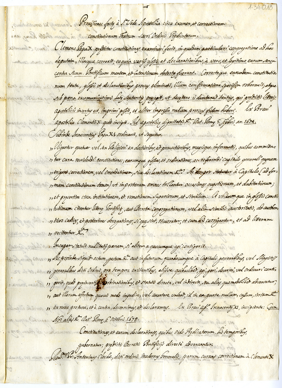 Disposizioni della Santa Sede per l'esame e la correzione della costituzione del frati predicatori (1700-1721)