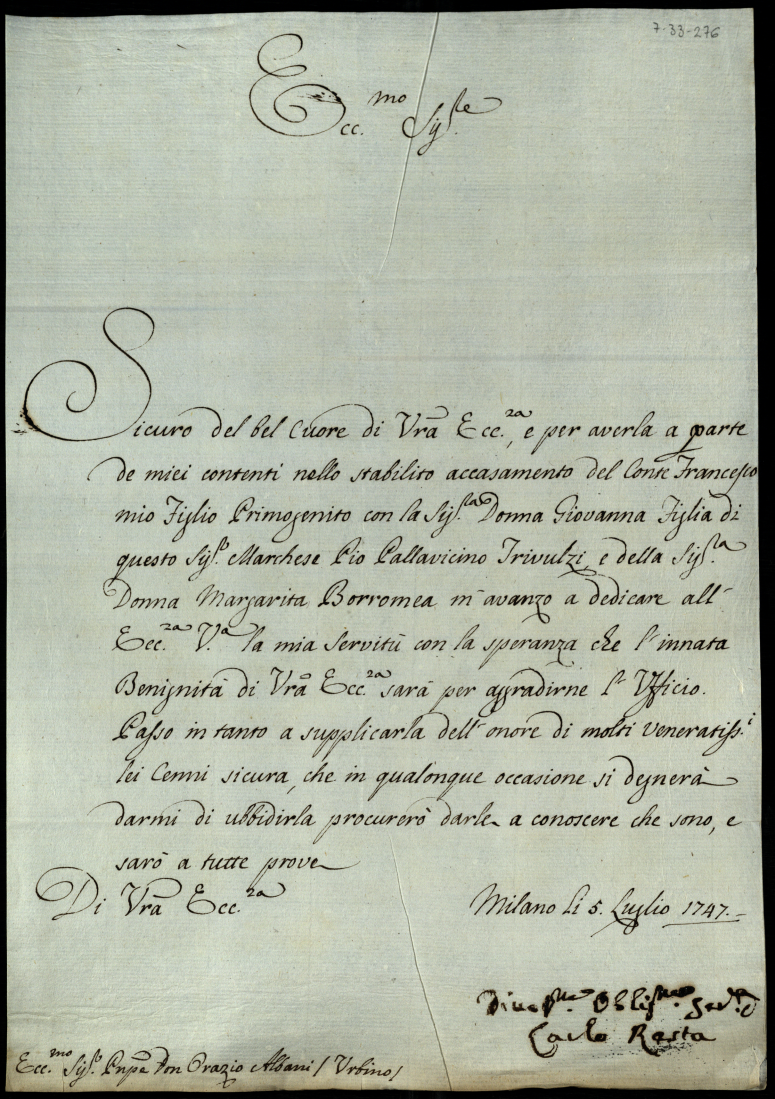 Lettere ricevute in Urbino dal Signor Principe Orazio Albani ultimo di questo nome nell'anno 1747