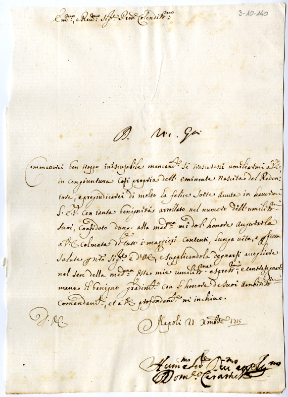 Lettera di Domenico Ceramelli al cardinale Annibale Albani (1715 dicembre 21)