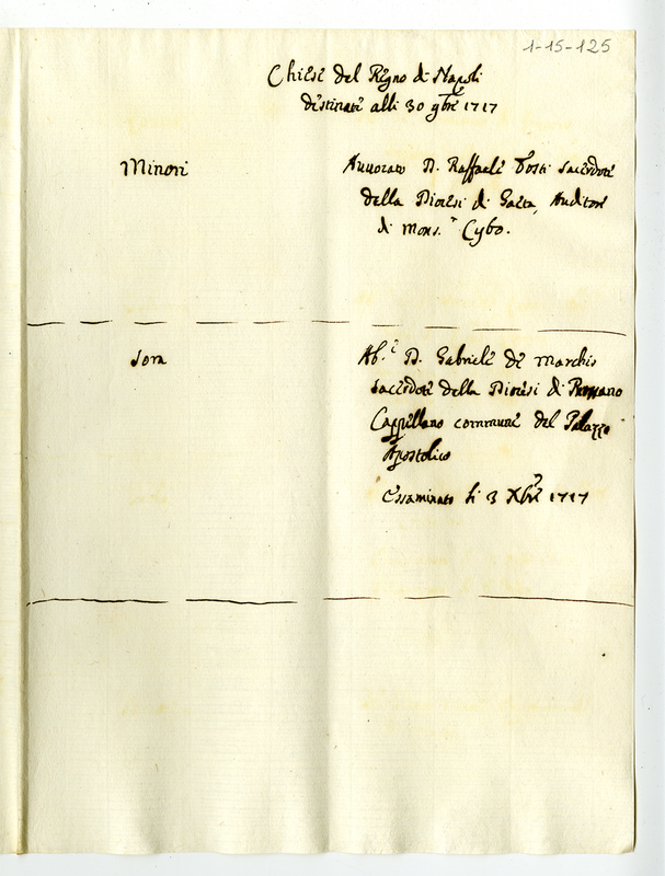 Chiese del regno di Napoli destinate alli 30 novembre 1717