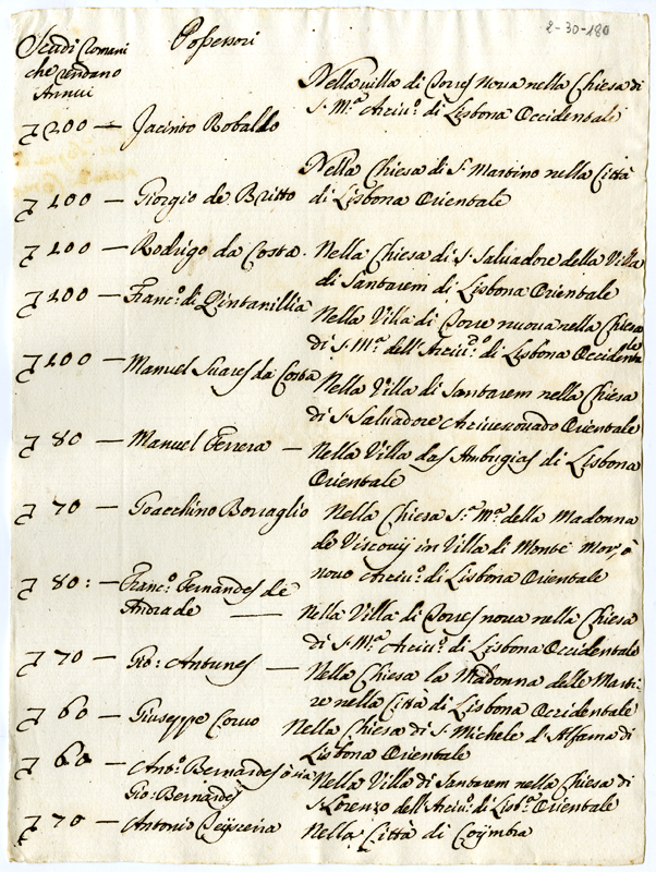 Rendite annue di vari possessori di benefici in Portogallo (1670-1721)