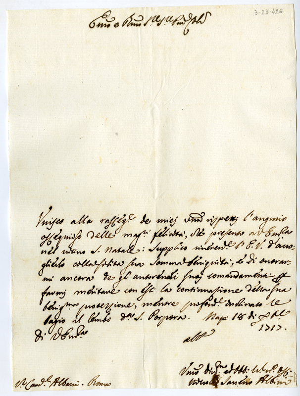 Lettera di Niccolò Saverio Albini al cardinale Annibale Albani (1717 dicembre 18)