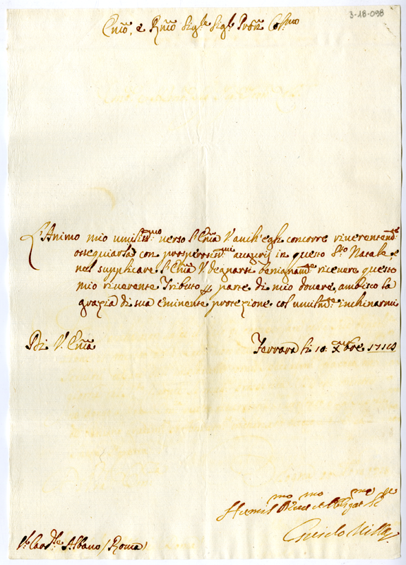 Lettera di Guido Villa al cardinale Annibale Albani (1718 dicembre 10)