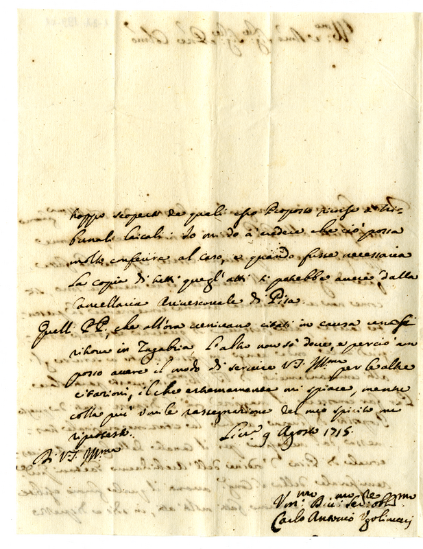 Archivio Albani|"Scritture spettanti alli frati dell'ordine de minori Conventuali, Osservanti, Riformati, Capuccini"|"1715 Livorno Lettere, e altre scritture appartenenti alle differenze vestenti tra li Frati Minori Osservanti di San Francesco di Santa Maria di Livorno, e il Proposto di quella Collegiata"|Documenti contenuti