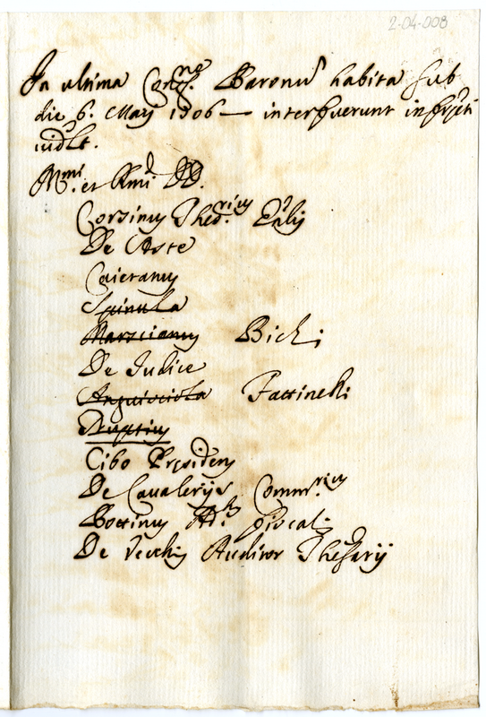 Nominativi di persone intervenute nell'ultima Congregazione dei Baroni il 6 marzo 1706