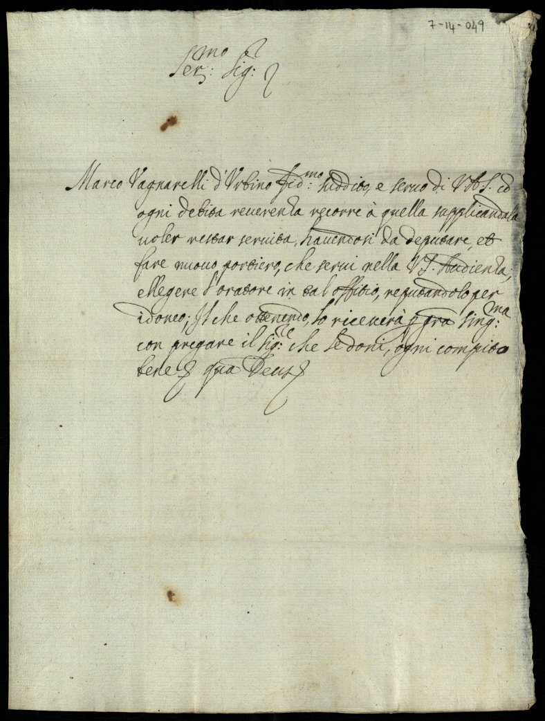 Lettere, memoriali al Serenissimo Principe d'Urbino appartenenti alla carica di segretario di Giustizia