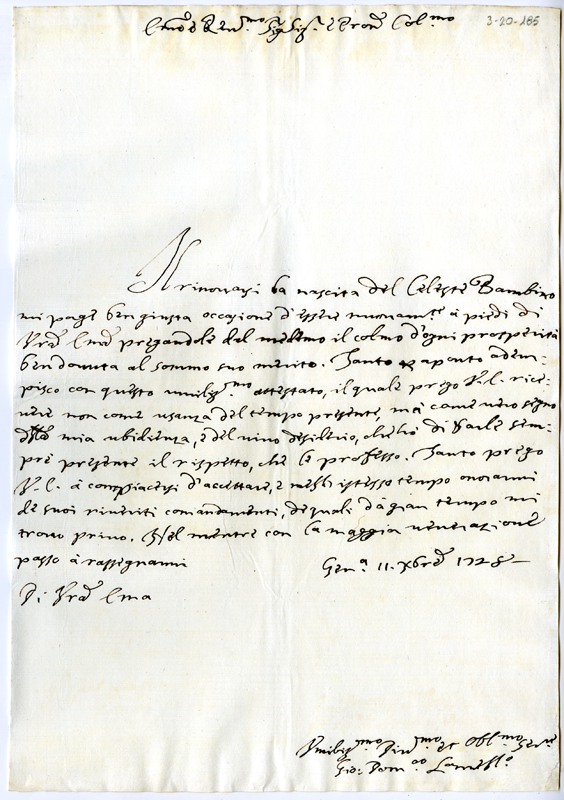 Lettera di Giovanni Domenico Lomellino al cardinale Annibale Albani (1728 dicembre 11)