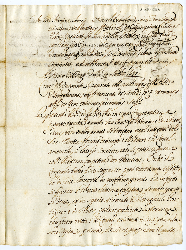 Esempio o ristretto di una deliberazione dell'Illustrissino Consiglio dei 40 della città Urbino (1661 gennaio 27)