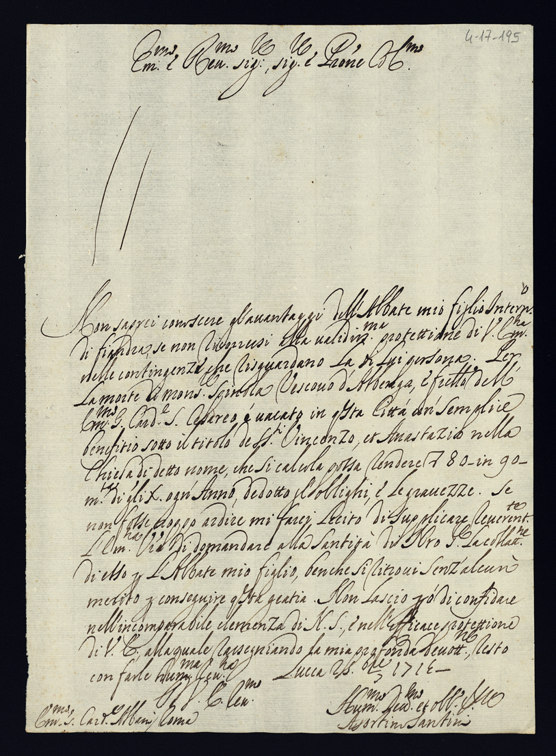 1714. Lettere di negozio e di complimento all'Illustrissima. Semestre secondo