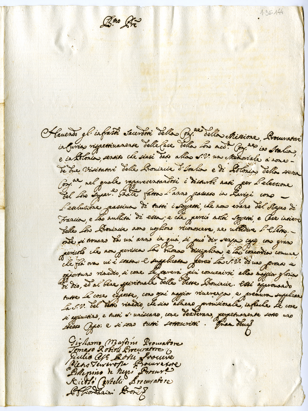 Lettera di alcuni sacerdoti della Congregazione della Missione a papa Innocenzo XII (1691-1700)