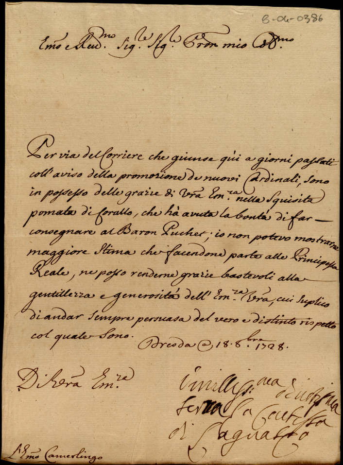 Lettere di diversi all'eccellentissimo signor cardinale S. Clemente dell'anno 1723, 1727 e 1728