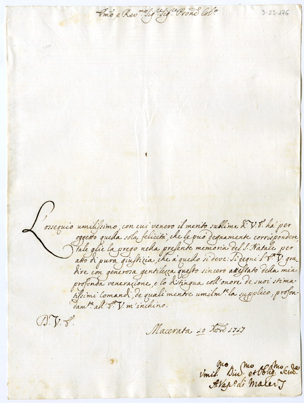 Lettera del vescovo di Macerata al cardinale Annibale Albani (1717 dicembre 10)