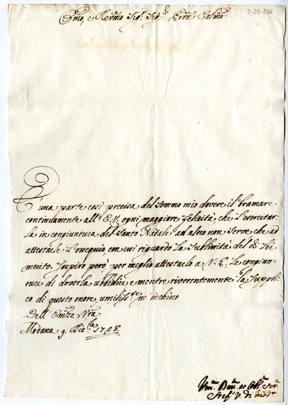Lettera di Stefano vescovo di Modena al cardinale Annibale Albani (1728 dicembre 9)